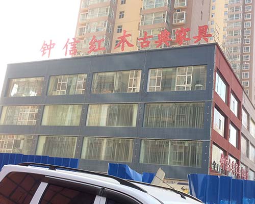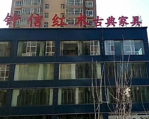 鐘信紅木古典家具體驗(yàn)館樓頂大字的制作。